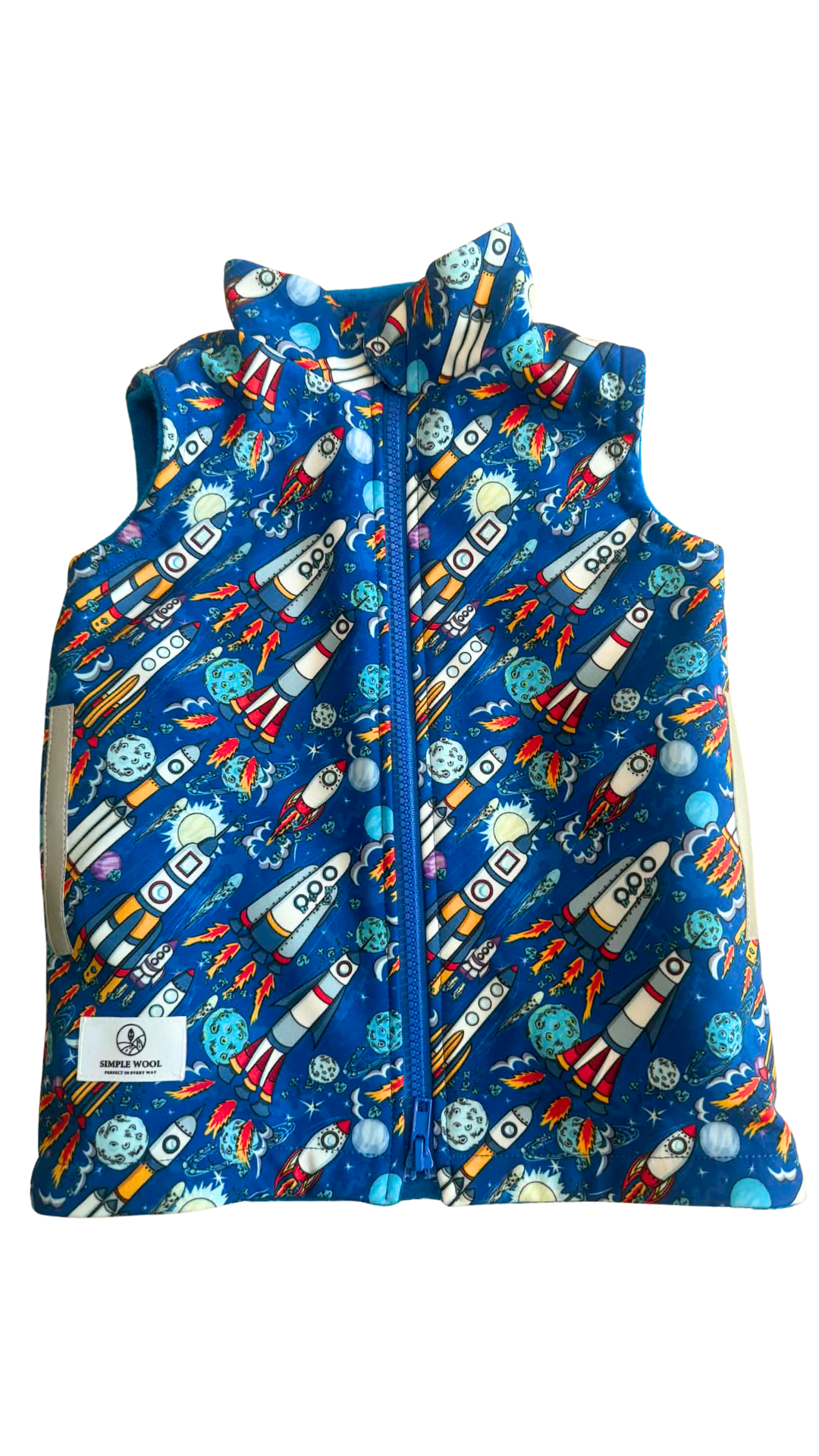 Idealna na porę przejściową, kiedy jest za ciepło na kurtkę ale za zimno na samą bluzę. Lekko przedłużony krój nie odsłania brzucha ani pleców podczas zabawy. Przy kieszeniach i na plecach naszyliśmy odblaski - zapewnią bezpieczeństwo wieczorami. Zamek pod brodą zakończony jest osłonką. Kamizelka posiada haczyk do zawieszania.