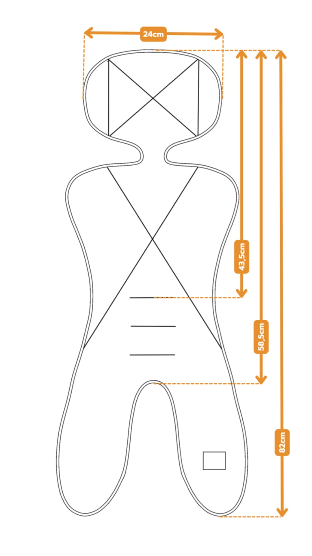 Do szyjki wkładki doszyte są troczki, które można zawiązać przekładając pod tapicerką (w miejscu gdzie wychodzą pasy naramienne). Dodaliśmy też gumki na zagłówku.